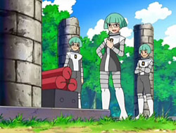 Zero as a name. He proved to be fully human in virtually every respect. But unfortunately, in Cyrus' opinion at least, he was TOO human. Too emotional, too curious, too flawed. Nevertheless, Charon received permission to produce even more Zeroes, this time clones of Cyrus' personal bodyguards- the twins Venus and Terra. These clones were a success- Venus and Terra have since been cloned repeatedly, dozens of times, with these mass-produced, green-haired clone grunts forming the backbone of Team Galactic's forces. |